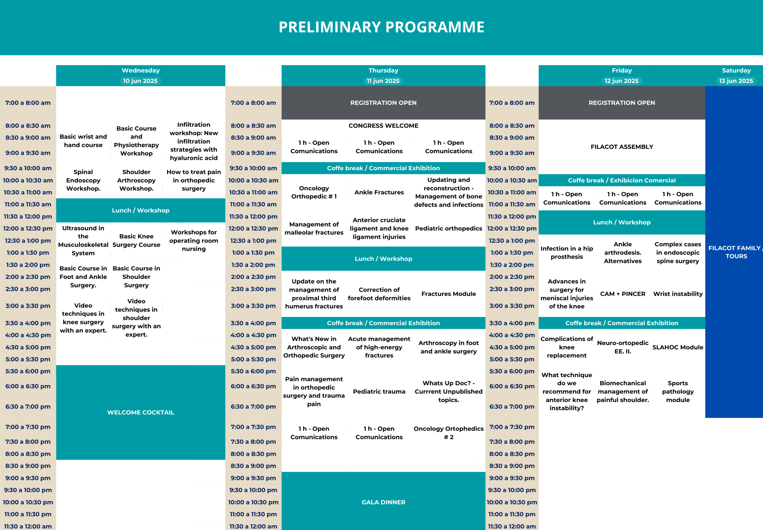 We are pleased to invite you to participate in the 1st FILACOT 2026 International Congress, under the theme “Reborn and Advancing,” which will bring together healthcare professionals, including traumatologists, orthopedists, physical therapists, and residents in training.